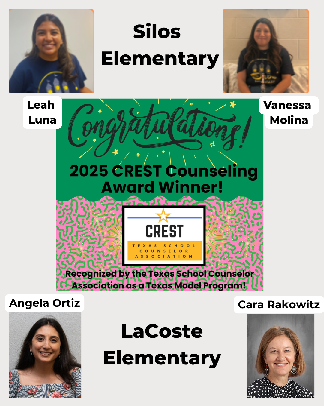 Silos and LaCoste Elementary counselors named 2025 CREST Award Winners